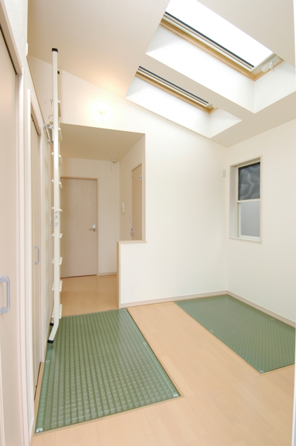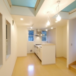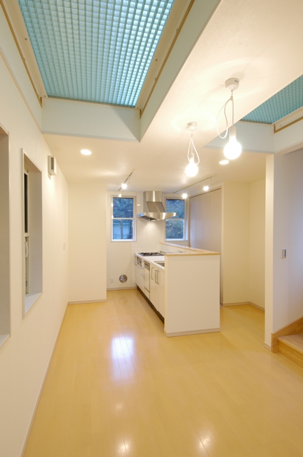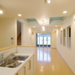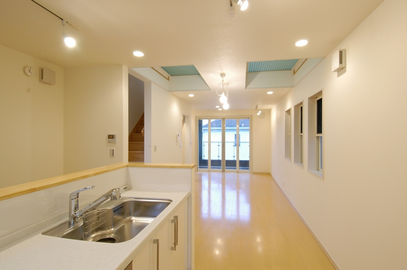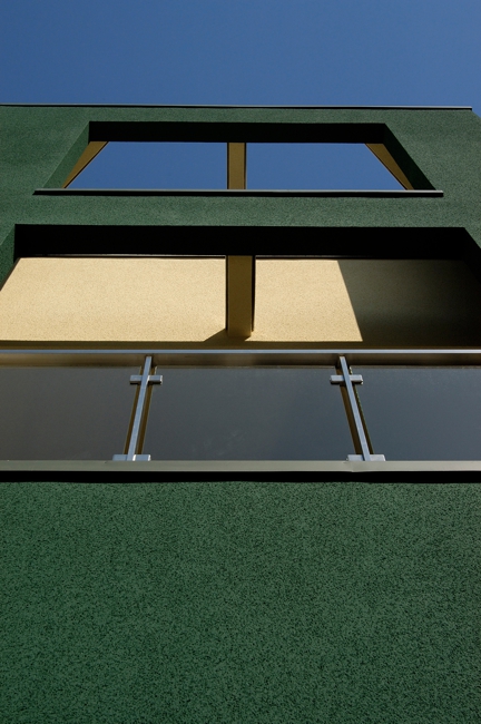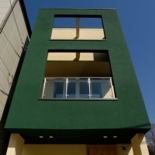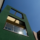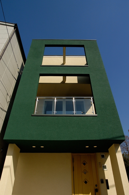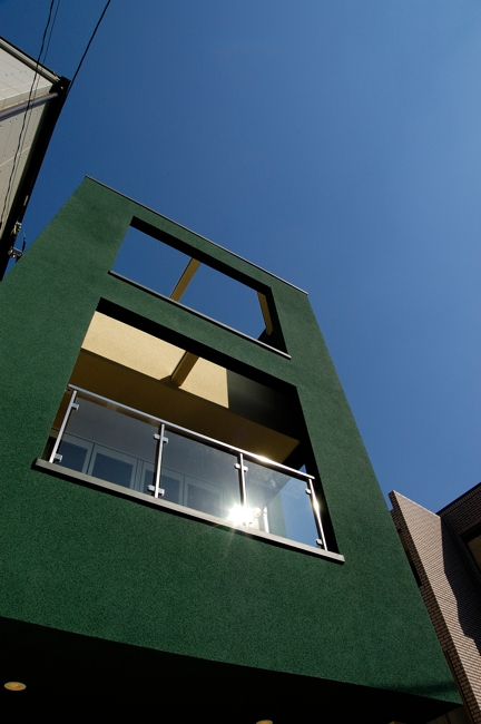 外観は主張色の緑をBOXとして見せた住宅です。隣に建つ[I BOX]と一体感を持たせて広く見せるため、外構計画は同じコンセプトとしてます。内部は中央階に位置してるリビングに光をおとすため、上階の床をグレーチングとし、その上のトップライトから光を取り込ませています。用途:個人住宅工事範囲:新築床面積:89.79m2 (27.16坪)構造:木造(地上3階建)施工:坂入建設場所:東京都目黒区