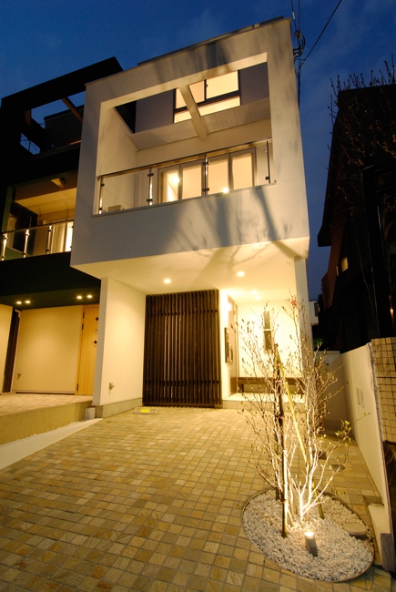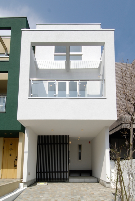 外観は白を基調としたBOX型の住宅です。カースペース床、植栽、照明、ルーバー等で車の無いときでも美しい外観が保てるように計画しました。内部はリビングをコアとして階段と吹き抜けが上下階を一体の空間として繋いでいます。光が降り注ぎ気持ちの良い住宅です。用途:個人住宅工事範囲:新築床面積:96.59m2 (29.21坪)構造:木造(地上3階建)施工:坂入建設所在地 :東京都目黒区