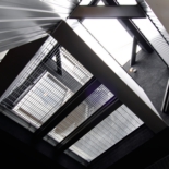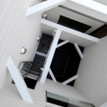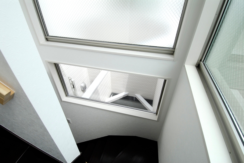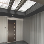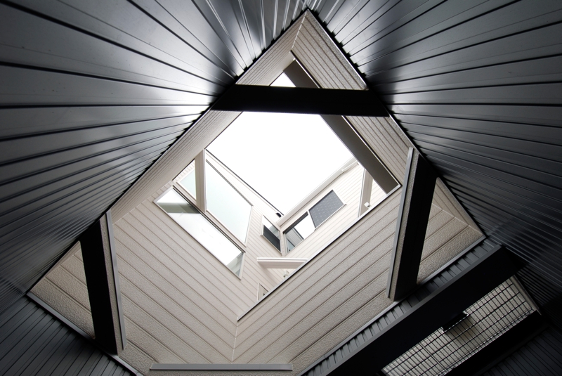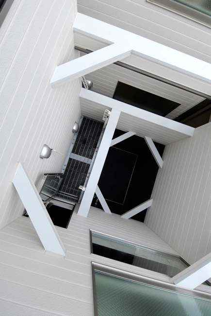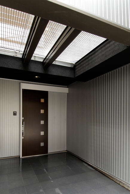 ダーク色+メタル素材の外観を壊さないようにテラス床をグレーチング