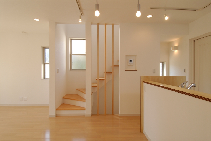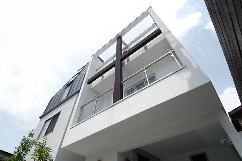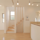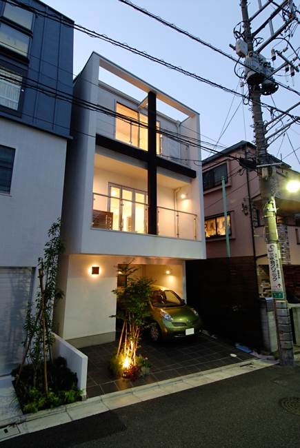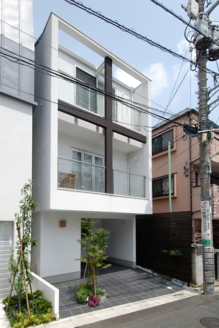 白を基調としたBOX型住宅。ファサードデザインとして十字(クロス)を提案。カーポートの床色をおさえることで建物を美しく落ち着きをもたせています。植栽+照明は主役の建物を引き立たせる脇役として良い働きをしてくれてます。若いご家族の為、内部は明るい色でまとめています。用途:個人住宅工事範囲:新築床面積:104.57m2 (31.63坪)構造:木造(地上3階建)施工:坂入建設所在地:東京都品川区