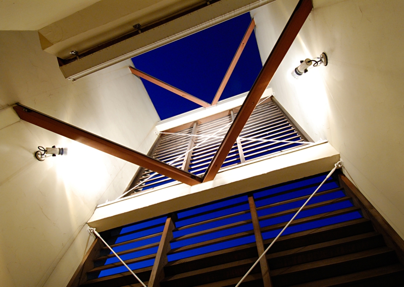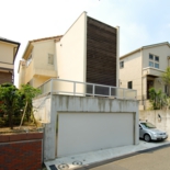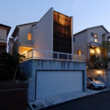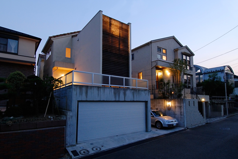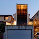 角度調整した木製ルーバーをファサードデザインとした住宅。ルーバーの先にある坪庭は、外からは見えず坪庭からはルーバー越しに空を眺めることができます。夜はこのルーバー自体が大きな照明器具の役割となり町のシンボルとなってます。また、中庭を設けることにより外に閉じ内に開く空間となってます。床材をコルクにして、暖かい家を演出しています。用途:個人住宅工事範囲:新築床面積:120.00m2 (36.30坪)構造:木造(地上3階建)